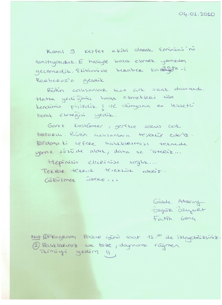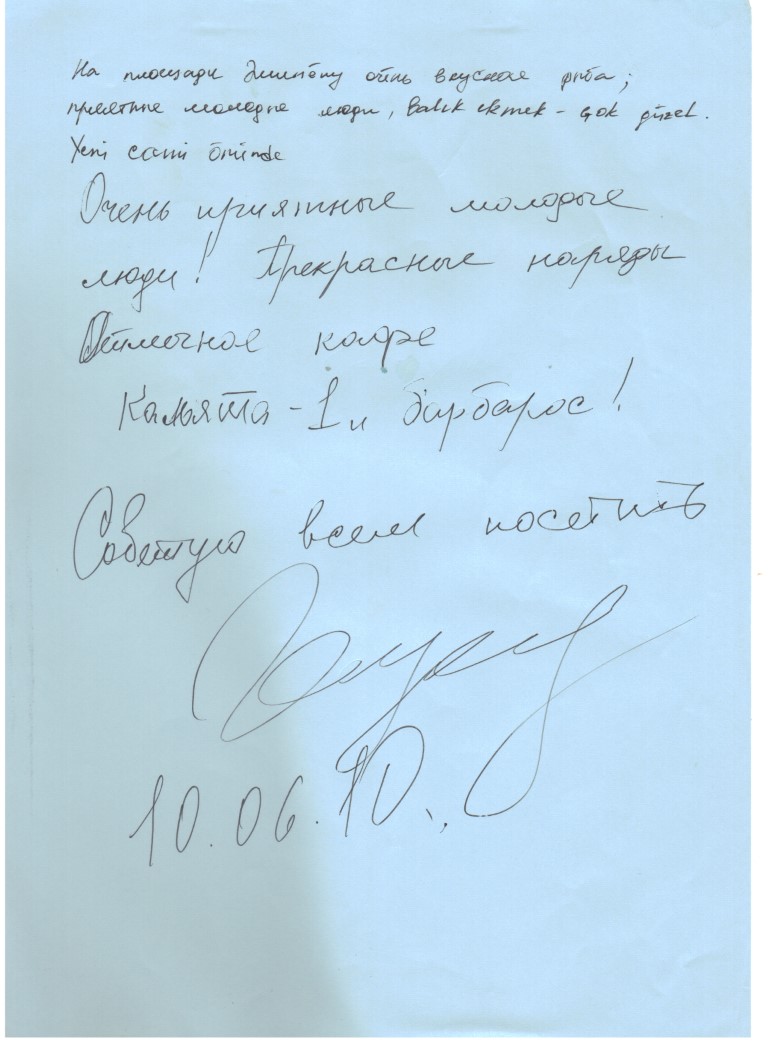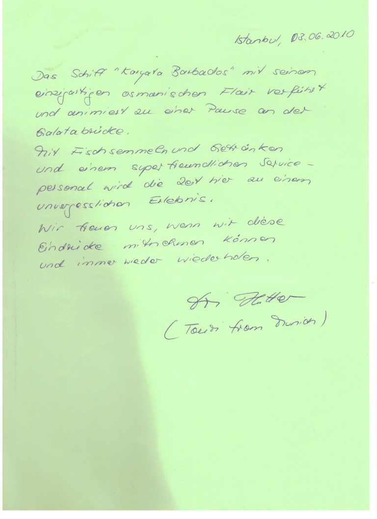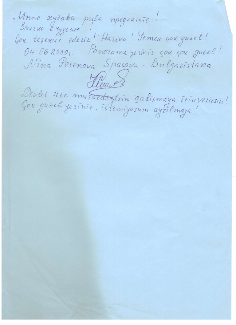 Kalyat-I have lived in this corner of Barbaros guests unique experiences and memories that we've been saving! In this area of our guests if you wish, or you can read the precious memories you can share your own memories by clicking the button below.